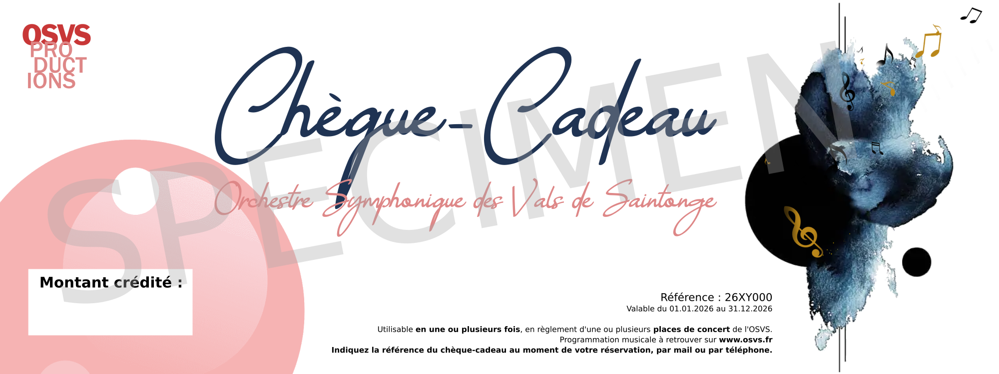 Le chèque-cadeau "Concert Symphonique" A créditer du montant de votre choix, puis à échanger contre une ou plusieurs places de concert. Envoi rapide par courrier ou sous format numérique, imprimable et personnalisable !